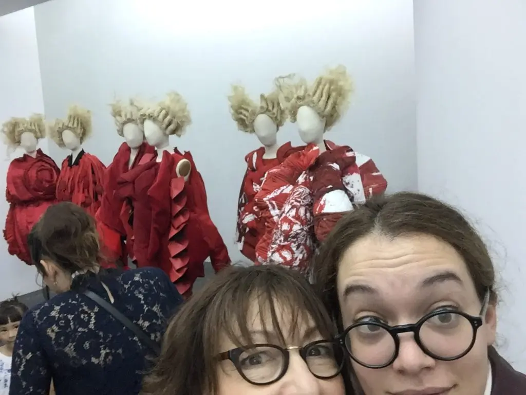 In the center of the exhibit, you see a particularly depressingly beautiful outfit labeled Birth/Marriage/Death, it’s literally a coat of black polyester lace and a net with children’s dresses and bonnets in various materials all in black. It’s from CDG’s Autumn/winter 2015-16 collection, when we were looking at it my mom was explaining the detail, and construction technique, I heard someone say, “well, that is definitely death in an outfit.” Granted, not many of CDG’s pieces when presented together can be seen as wearable, however, the artistry behind them allows the view to interpret them in relation to their experience. That is why this exhibit is successful, it allows a designer, who has had a profound influence on the fashion industry from her first collection in 1969, to be shown in a space that can reach out to the masses. You may not understand it, you may not get it, but you have the ability if you want to interpret it. The exhibit presents the clothing very democratically, it’s mostly eye level, you interact with the clothing on a more personal level, something you may gain from it, is that clothing and fashion has no limitations. Something ugly can be beautiful, and something beautiful could actually be ugly.